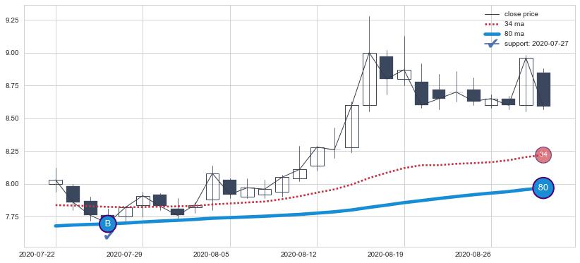 ⚀ 2022-08-04日显现 10日-20日-30日均线 【蛟龙出海】买入点 看多信号,后市看涨,买入