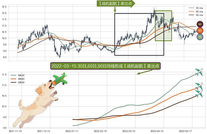 ⚀ 2022-01-05日-2022-05-20日显现 30日-60日-90日均线 【战机起航】卖出点 看空信号,后市看跌,卖出