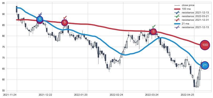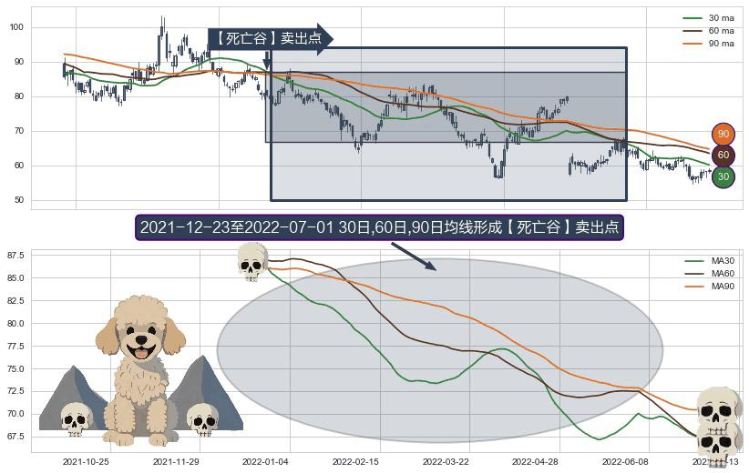 ⚀ 2021-12-24-日至2022-07-01-日显现 30日-60日-90日均线 【死亡谷】卖出点 看空信号,后市看跌,卖出