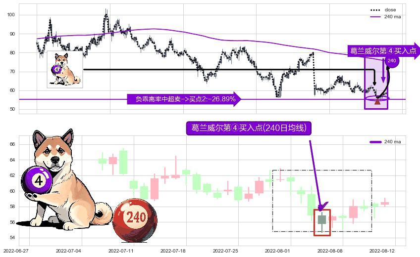 ⚀ 2022-08-04-日显现 葛兰威尔均线 240日均线 第④买入点 下降趋势均值回复的短线反弹信号,后市看涨,买进信号