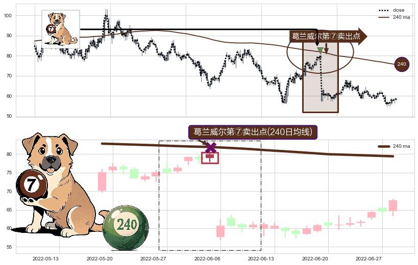 ⚀ 2022-06-02-日显现 葛兰威尔均线 240日均线 第⑦卖出点 下降趋势的中继信号,后市看跌,卖出信号