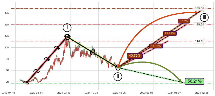 ➣ 【仅预测突破】最后价格:58.58与预测突破价格:73.32→【空间中等】后续最小【整理】第一目标价格→(2023-04-04: 174.05 )