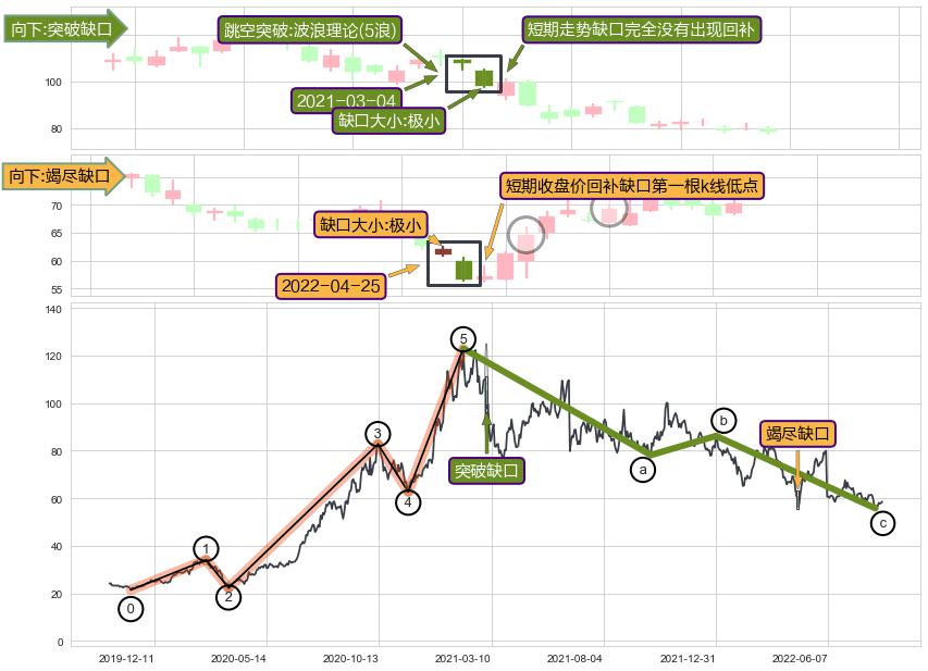 ➢ 2022-04-25形成:向下跳空【竭尽】缺口