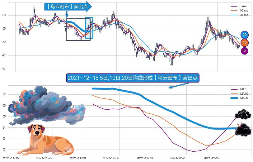 ⚀ 2021-11-30日-2021-12-30日显现 5日-10日-20日均线 【乌云密布】卖出点 看空信号,后市看跌,卖出