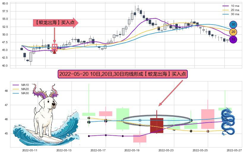 ⚀ 2022-05-20日显现 10日-20日-30日均线 【蛟龙出海】买入点 看多信号,后市看涨,买入