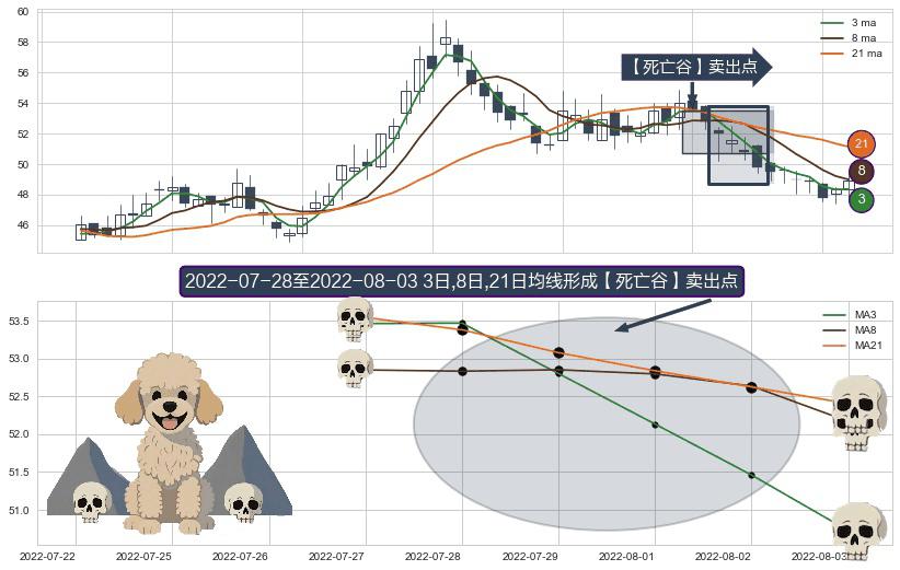 ⚀ 2022-07-29-日至2022-08-03-日显现 3日-8日-21日均线 【死亡谷】卖出点 看空信号,后市看跌,卖出