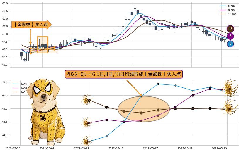⚀ 2022-05-16日显现 5日-8日-13日均线 【金蜘蛛】买入点 看多信号,后市看涨,买入