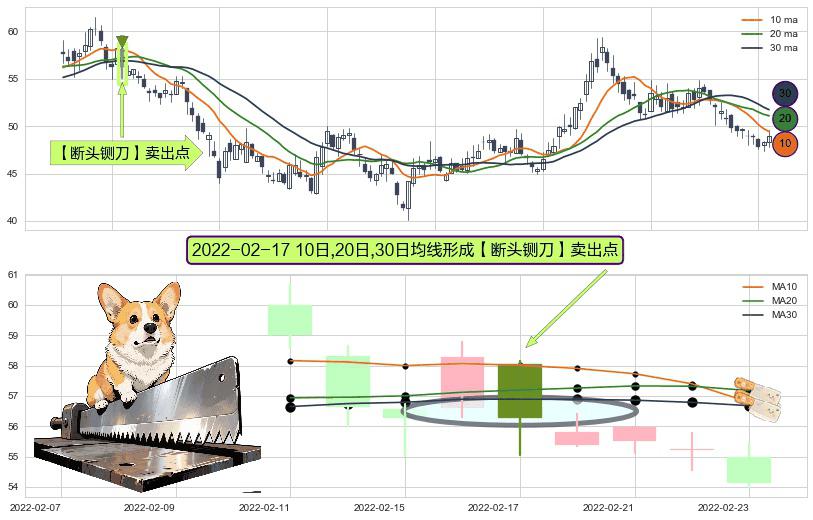 ⚀ 2022-02-17日显现 10日-20日-30日均线 【断头铡刀】卖出点 看空信号,后市看跌,卖出