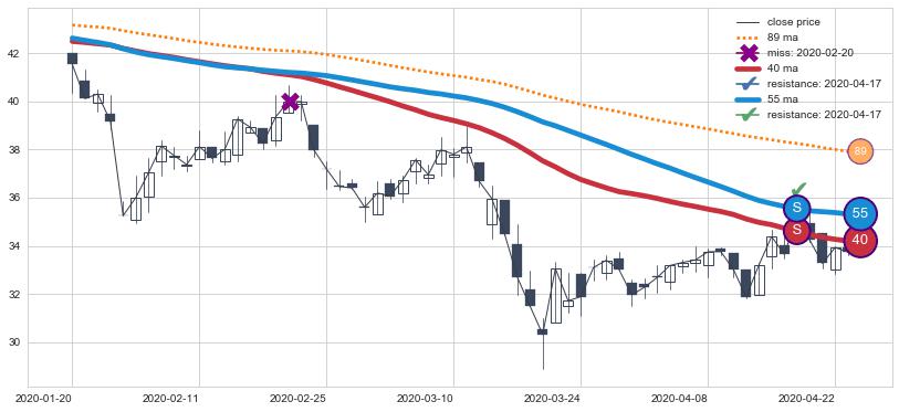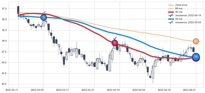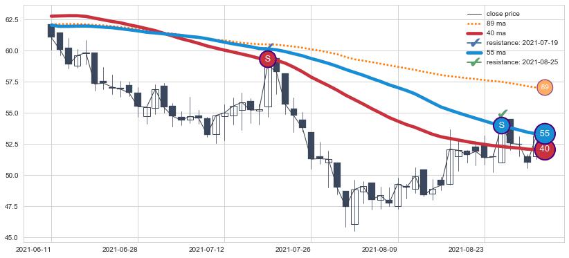 ⚂ 2022-06-23-日均线向上突破,2022-08-08-日重新下穿均线破位,均线阻力再次生效