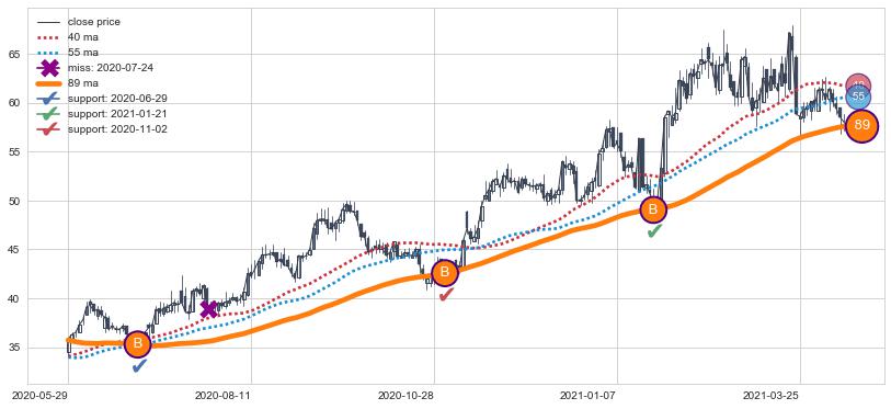 ⚀ 中期均线MA8下穿长期均线MA21形成的交叉是标准 死亡交叉