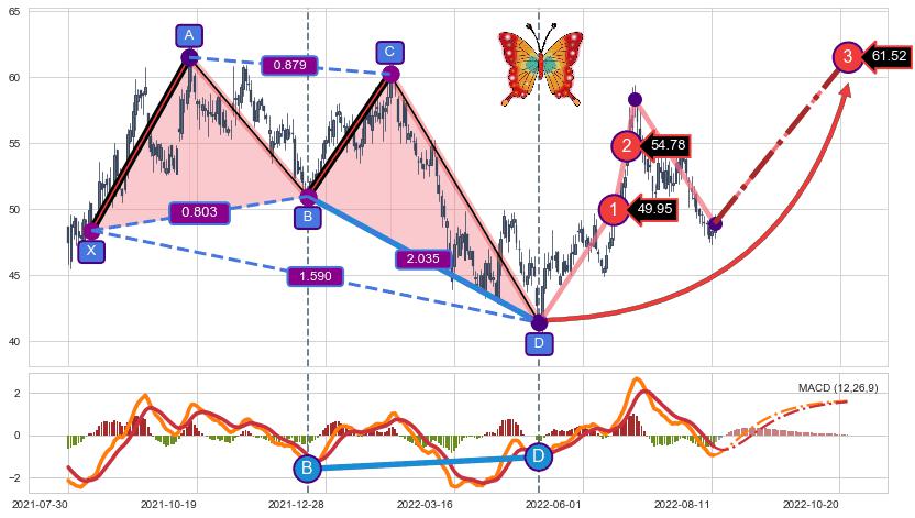 ➣ 已完成【蝴蝶】形态起点X: 2021-08-12, 终点D: 2022-05-09, 共175交易日