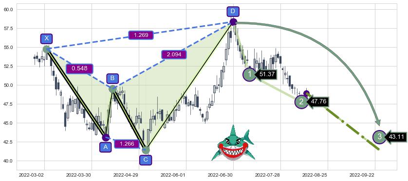 ➣ 已完成【鲨鱼】形态起点X: 2022-03-03, 终点D: 2022-06-30, 共80交易日
