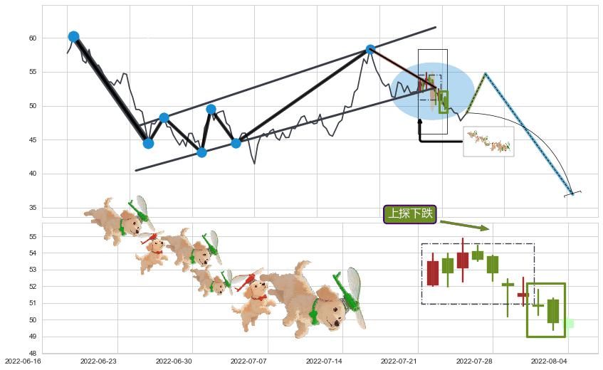 ➣ D点拟合预测价格70.02,距离最后交易收盘价格48.94相差 +43.08%