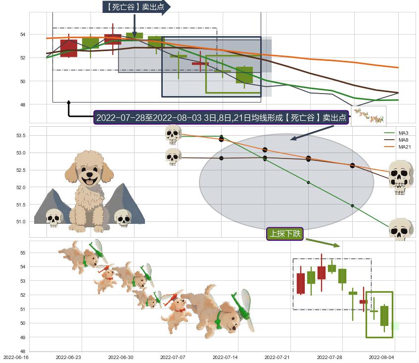| 2 🅚:绵绵阴跌|下跌不止 ➕ 🎢:【死亡谷】卖出点均线组合卖出点信号形成后,猜想后续破位下跌,沿着向下的尖头三角下跌 ☞ 看空信号 ⇥ 【均线】交织【🅚线】⇥ 综合量化分数: 48 | > |