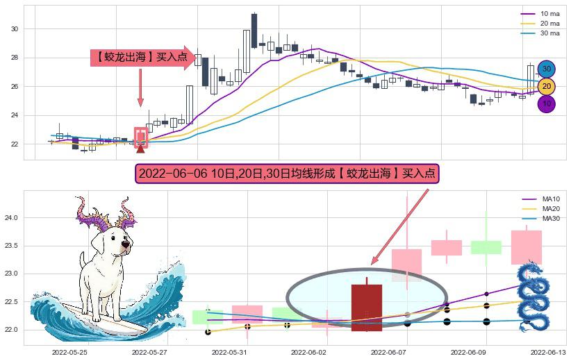 ⚀ 2022-06-06日显现 10日-20日-30日均线 【蛟龙出海】买入点 看多信号,后市看涨,买入