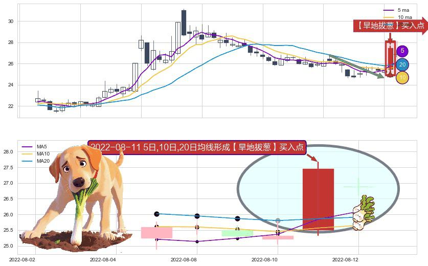 ⚀ 2022-08-11日显现 5日-10日-20日均线 【旱地拔葱】买入点 看多信号,后市看涨,买入