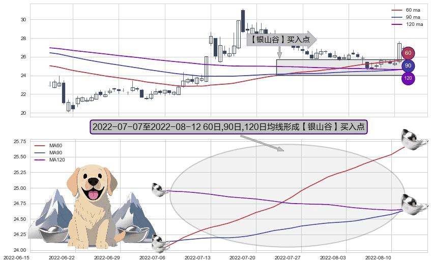 ⚀ 2022-07-08-日至2022-08-12-日显现 60日-90日-120日均线 【银山谷】买入点 看多信号,后市看涨,买入