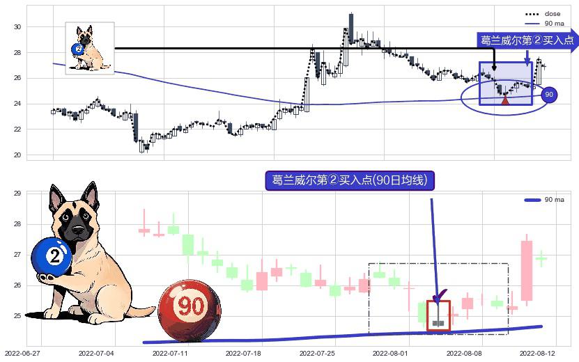 ⚀ 2022-08-03-日显现 葛兰威尔均线 90日均线 第②买入点 上升趋势的中继信号,后市看涨,买进信号