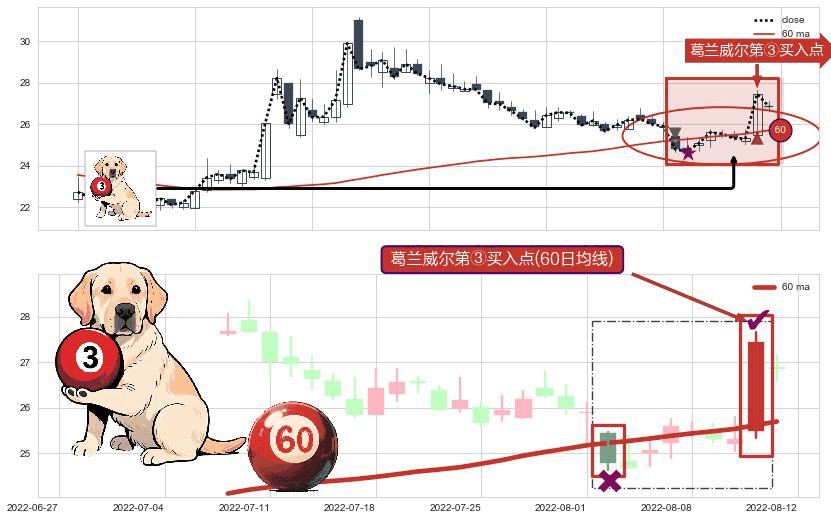 ⚀ 2022-08-11-日显现 葛兰威尔均线 60日均线 第③买入点 上升趋势的中继信号,后市看涨,买进信号