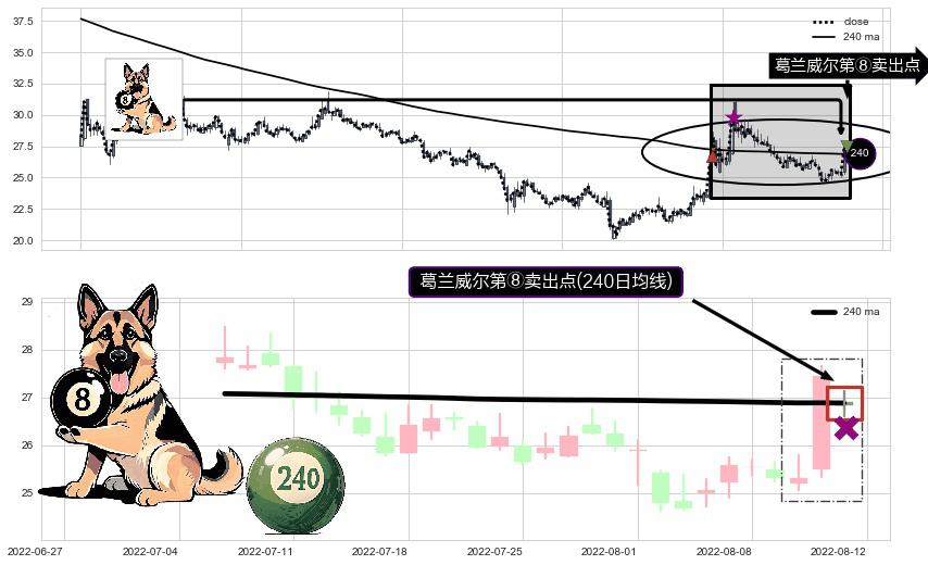 ⚀ 2022-08-12-日显现 葛兰威尔均线 240日均线 第⑧卖出点 下降趋势的中继信号,后市看跌,卖出信号