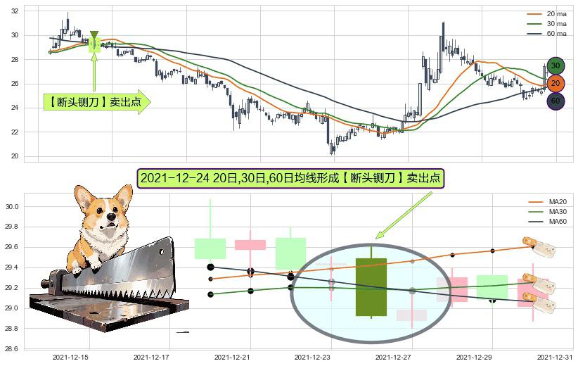 ⚀ 2021-12-24日显现 20日-30日-60日均线 【断头铡刀】卖出点 看空信号,后市看跌,卖出