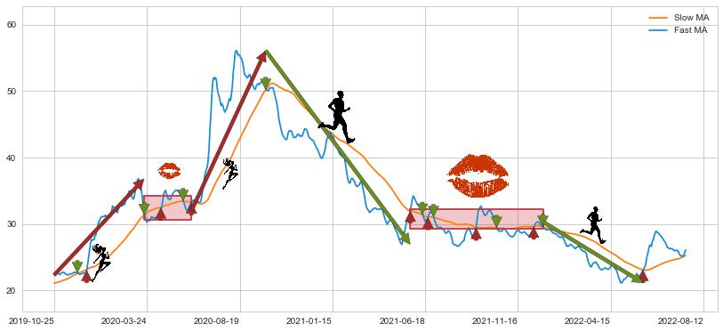 2021-12-23至2022-06-09 慢线与快线呈空头排列, 慢线与快线接触少,无缠绕