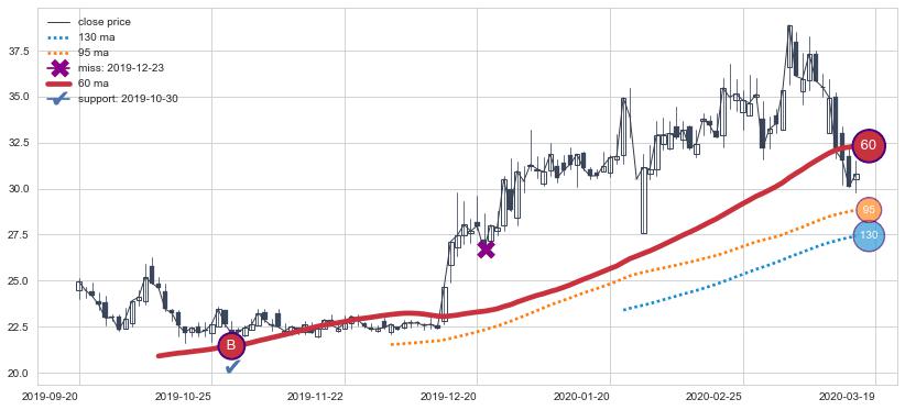 ⚄ 短期均线MA60上穿中期均线MA90形成的交叉是标准 黄金交叉