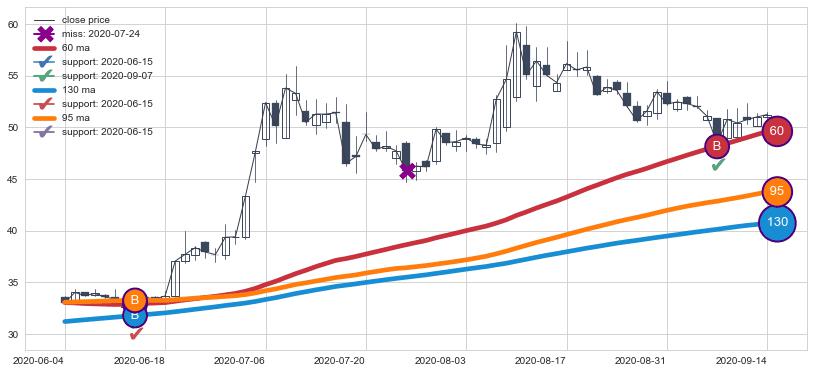 ⚅ 买点向上突破均线后,价格走势有持续向上的迹象,但动能稍显不足,迟迟不能远离均线