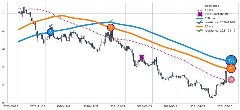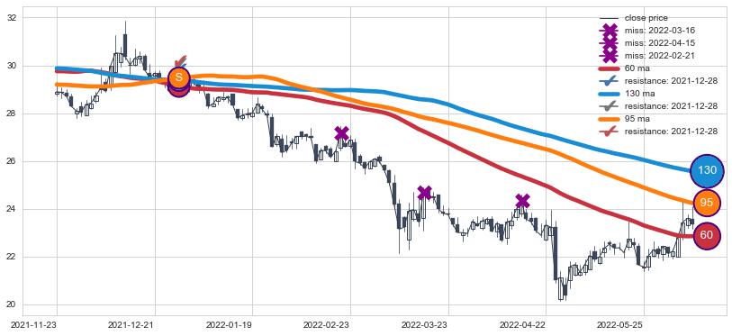 ⚂ 2022-06-15-日均线向上突破,2022-08-12-日重新下穿均线破位,均线阻力再次生效
