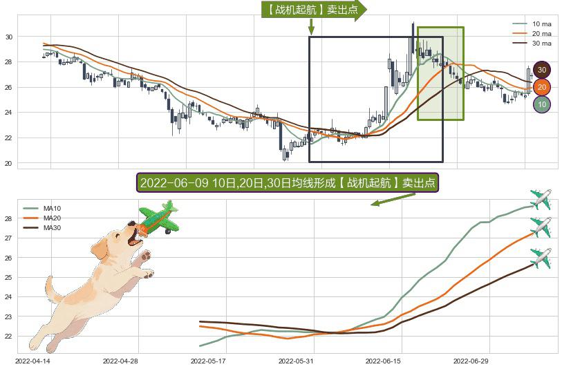⚀ 2022-05-12日-2022-07-06日显现 10日-20日-30日均线 【战机起航】卖出点 看空信号,后市看跌,卖出