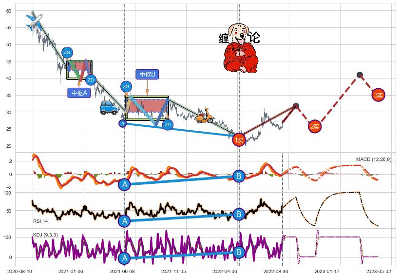 | 13 🅚:【旱地拔葱】买入点 ➕ ☯️:缠论买卖点下降缠中枢AB形成后猜想拐点1买已到达,猜想后续持续拉升(均值回复) ☞ 看多信号 ⇥ 【均线】交织【图形】⇥ 综合量化分数: 53 | > |