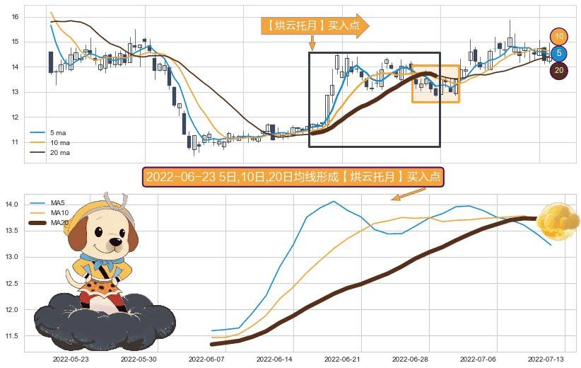 ⚀ 2022-06-06日-2022-07-12日显现 5日-10日-20日均线 【烘云托月】买入点 看多信号,后市看涨,买入