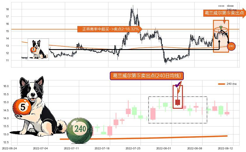 ⚀ 2022-08-02-日显现 葛兰威尔均线 240日均线 第⑤卖出点 上升趋势均值回复的短线回落信号,后市看跌,卖出信号