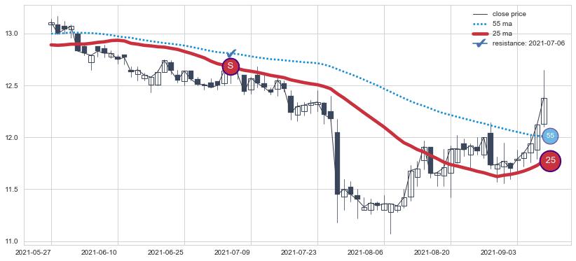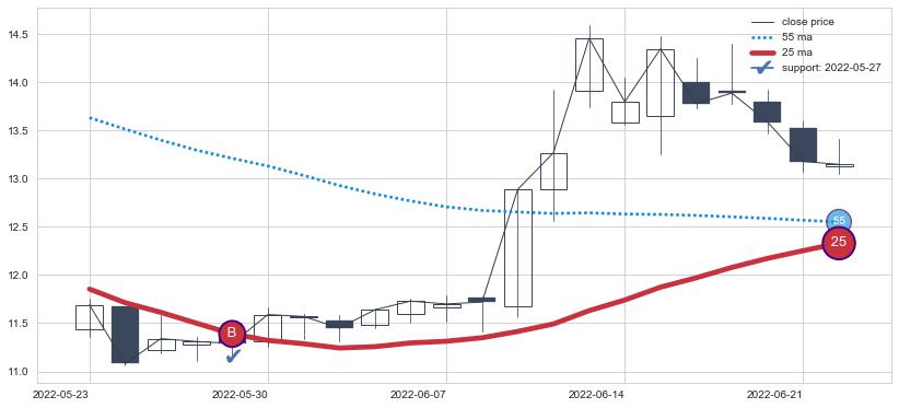 ⚂ 2022-04-20-日均线向下破位,2022-07-18-日重新上穿突破均线,均线支撑再次生效
