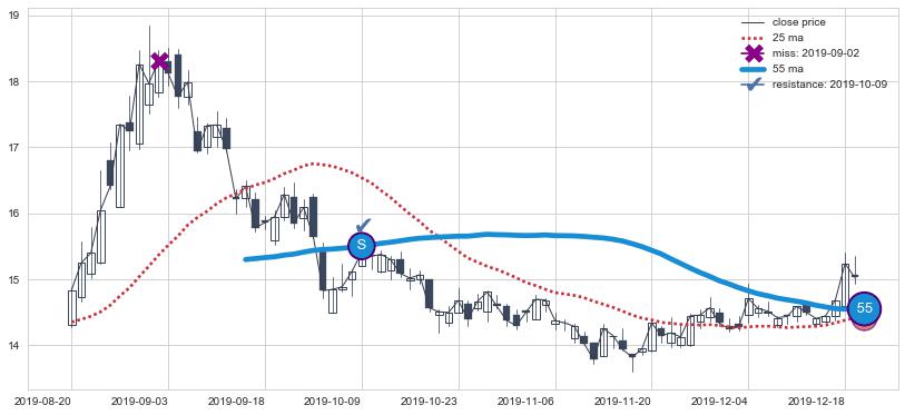 ➢ 最优均线组合共正确确认支撑阻力信号5处,正确确认率 83.33%