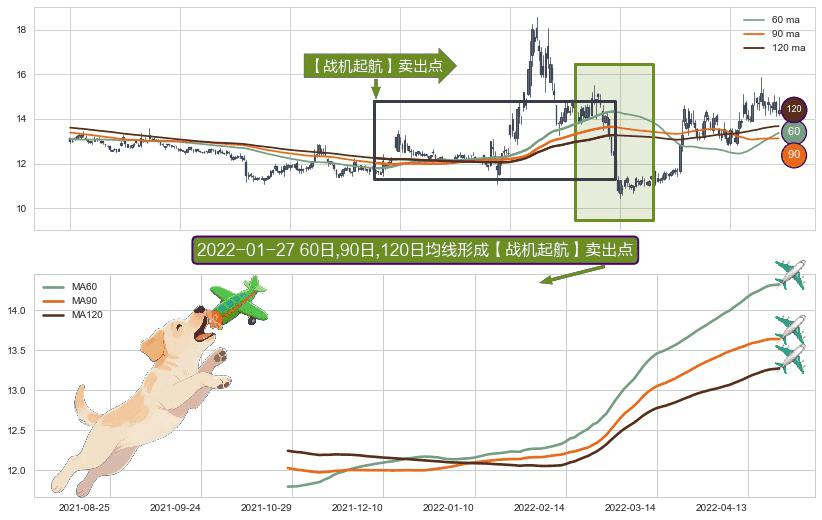 ⚀ 2021-10-28日-2022-04-22日显现 60日-90日-120日均线 【战机起航】卖出点 看空信号,后市看跌,卖出