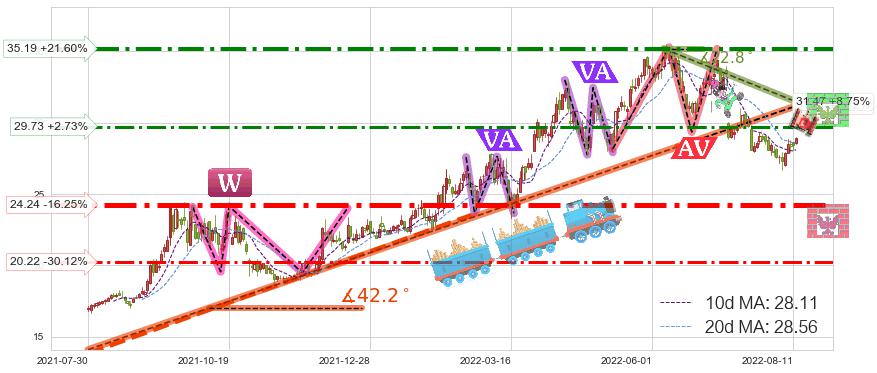 ♘ 阻力价格位29.73,可信任强度57.40%,距离最后交易2022-08-12形成的收盘价格28.94相差 +2.73%