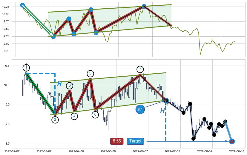 🦴 长线均值回复组合短线趋势跟踪[强阻力信号]2022-05-30-2022-07-25下跌趋势依然成立(下跌趋势跟踪依然存在),短线价格略微上行反弹(均值回复猜想),即将接近下跌趋势提供的未破位阻力价格:8.99。