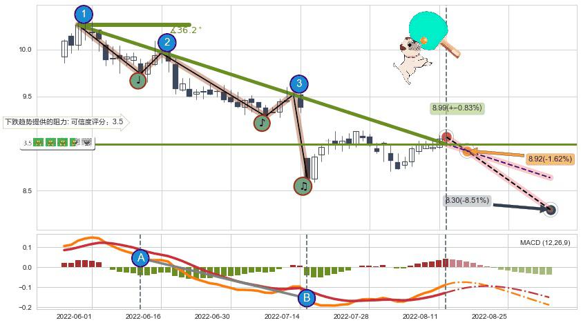 ➢ 预测:2022-08-17,【试探阻力】稳定目前下跌趋势的前提下,预测价格:8.92