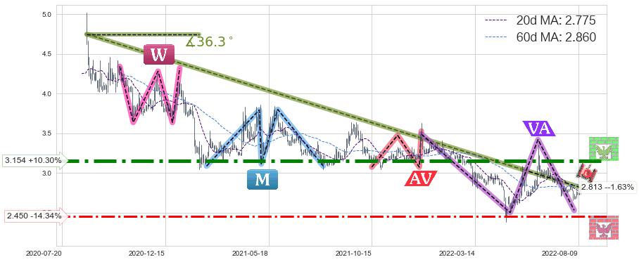 ➣ D点拟合预测价格3.545,距离最后交易收盘价格2.860相差 +23.94%