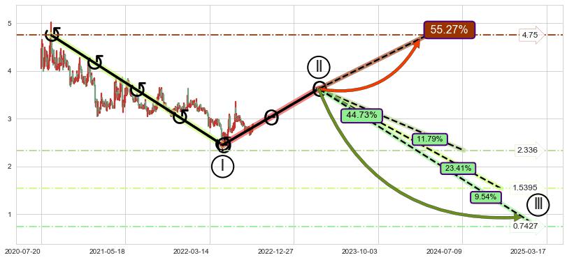 ➣ AI预测: 假定反转启动后, 第❸目标位置(2023-06-28, 2.450)