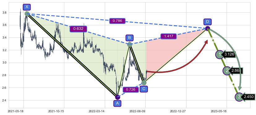 ➣ 未完成【伽利】形态起点X: 2021-05-28, 已到达C点: 2022-08-03, 预测最终D点: 2023-03-10, 共445交易日