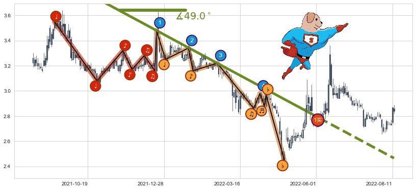 ♘ 阻力价格位3.523,可信任强度75.07%,距离最后交易2022-08-12形成的收盘价格2.860相差 +23.18%