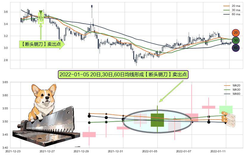 形态多维评估: ⚀ 2022-01-05日显现 20日-30日-60日均线 【断头铡刀】卖出点 看空信号,后市看跌,卖出