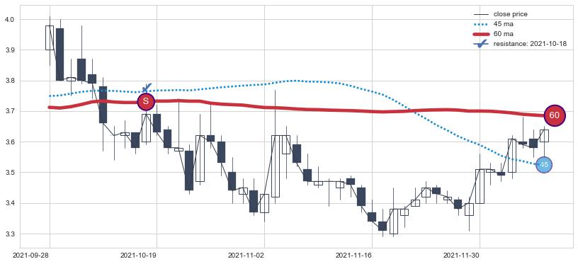 下跌趋势2021-09-28-2021-12-08,均线60确认关键阻力1处