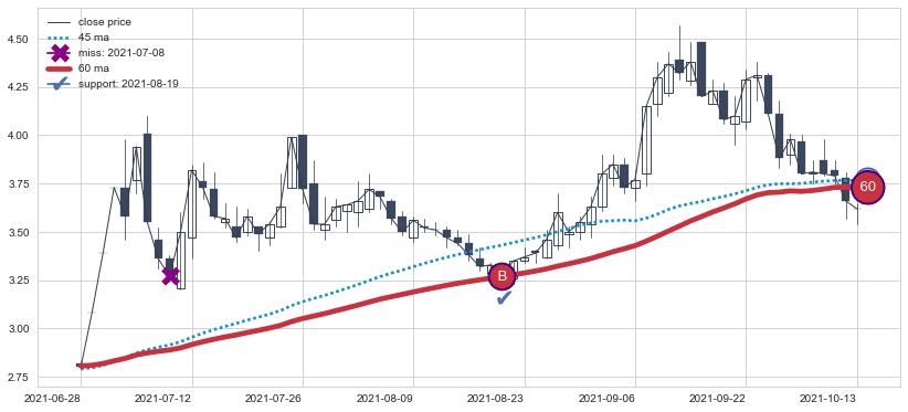 上涨趋势2021-06-28-2021-10-13,均线60确认关键支撑1处