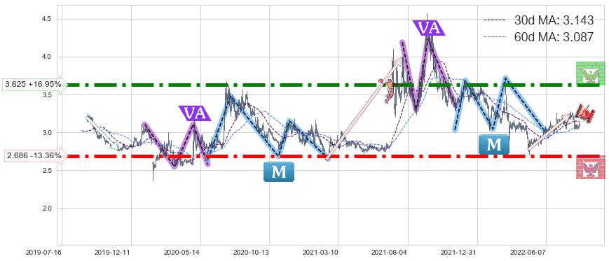 ♘ 阻力价格位3.625,可信任强度94.80%,距离最后交易2022-08-12形成的收盘价格3.100相差 +16.95%