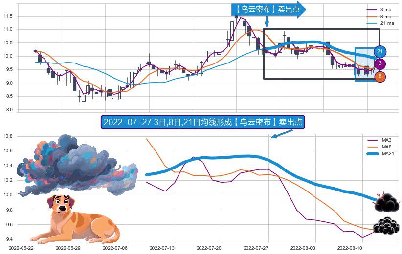 形态多维评估: ⚀ 2022-07-08日-2022-08-12日显现 3日-8日-21日均线 【乌云密布】卖出点 看空信号,后市看跌,卖出