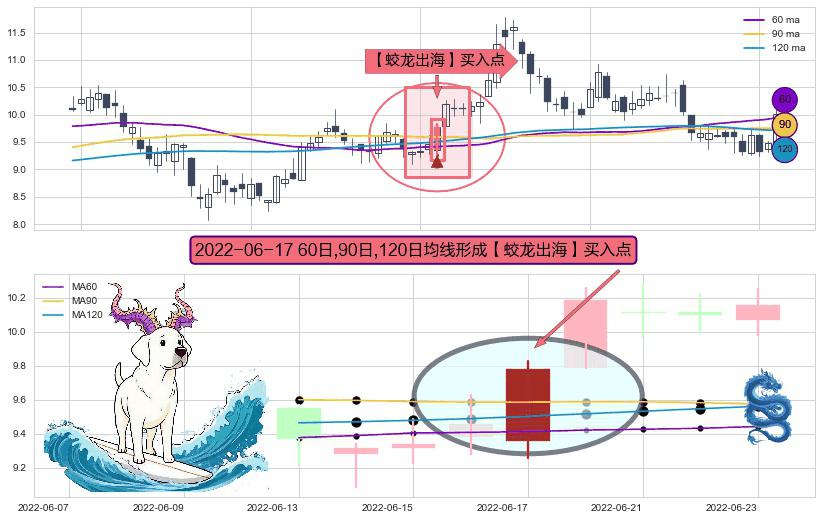 形态多维评估: ⚀ 2022-06-17日显现 60日-90日-120日均线 【蛟龙出海】买入点 看多信号,后市看涨,买入
