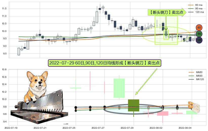 形态多维评估: ⚀ 2022-07-29日显现 60日-90日-120日均线 【断头铡刀】卖出点 看空信号,后市看跌,卖出